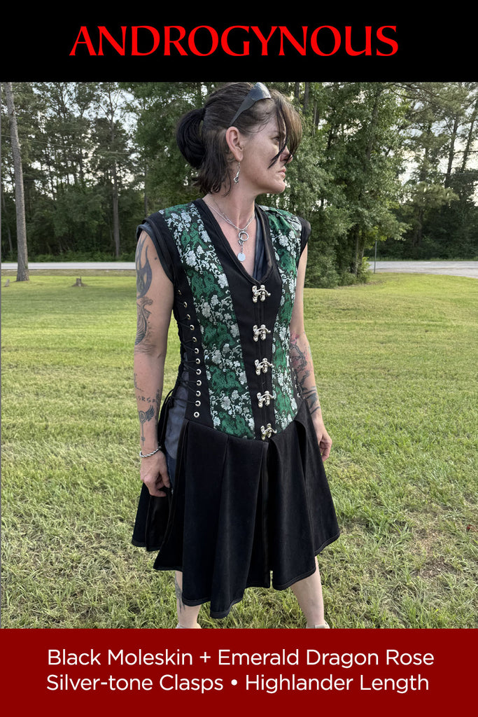 This style takes after the flowing Robin cut, with a minimalist V-neckline and the option for a hood. It’s made for those who like a touch of edge, a bit of mystery, and a whole lot of comfort. The length is approximately that of a kilt.